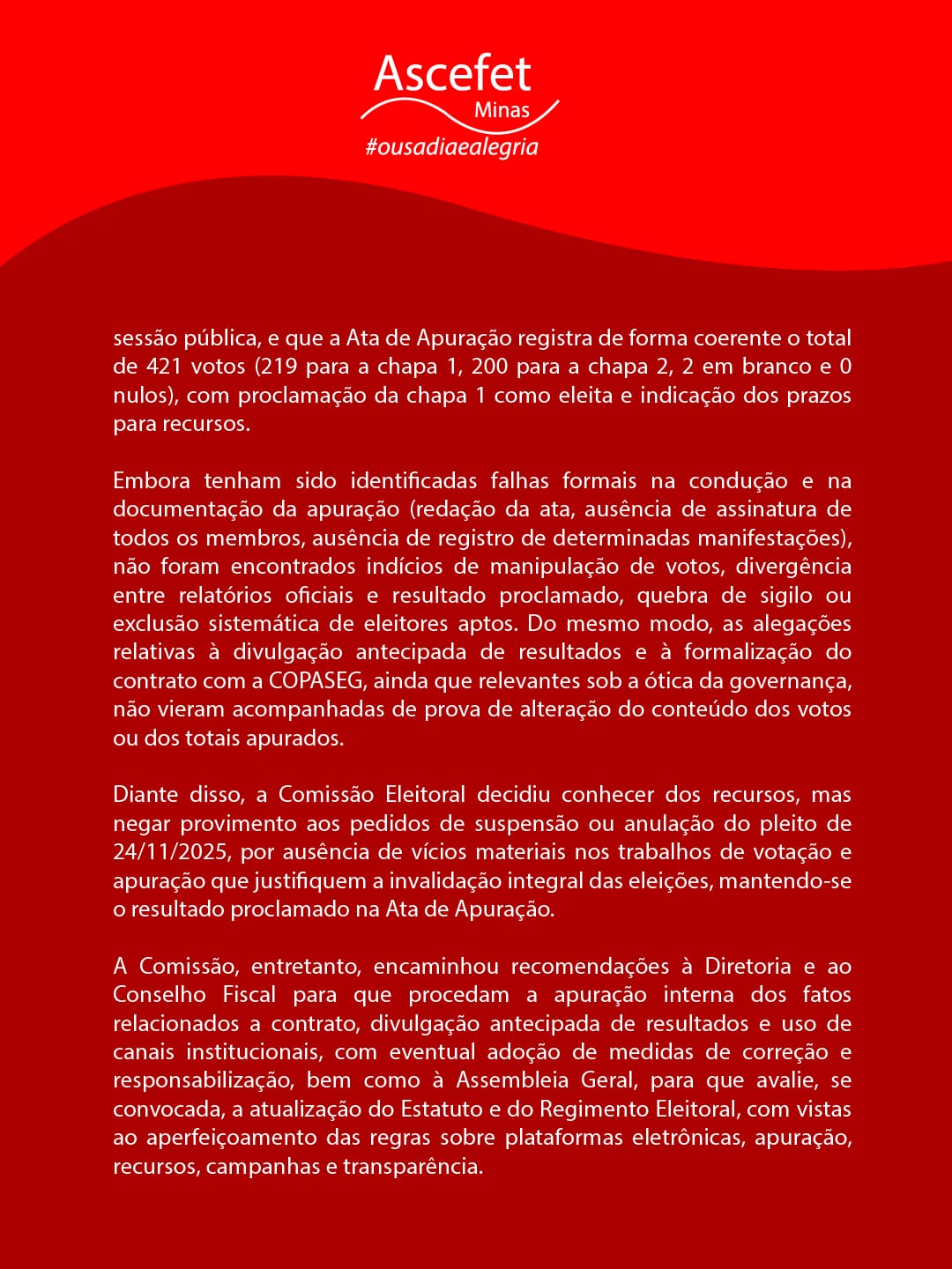 Comunicado da Comissão Eleitoral sobre recursos 03/12/2025 | Comunicado . Fique por Dentro . Posts | 0 Comentários |